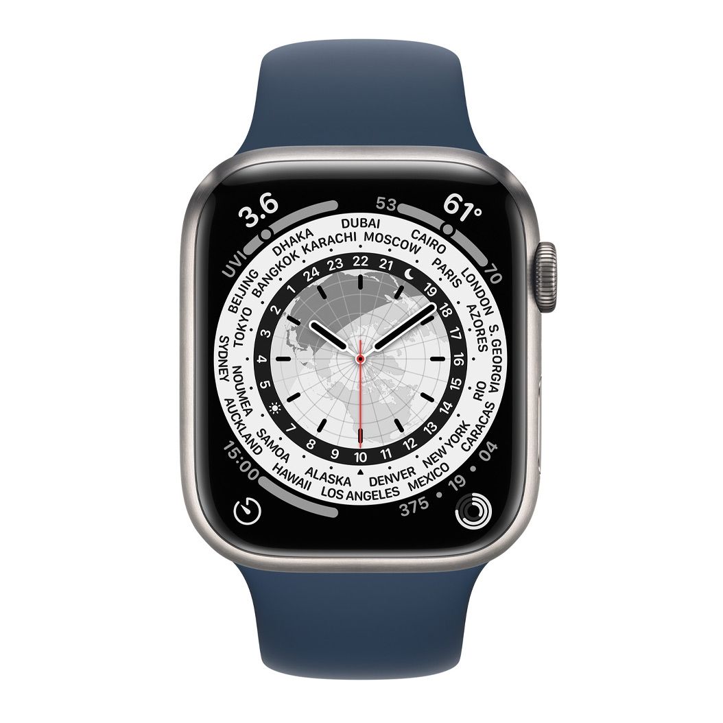 Apple Watch Series 7 LTE 45mm Silver Titanium Case w. Abyss Blue Sport Band (ML8W3 + MKUWA3)