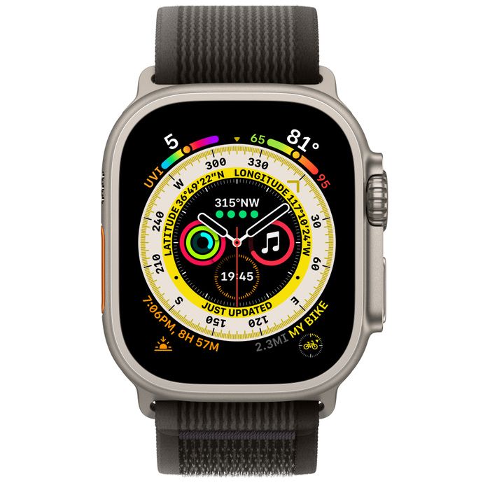 Apple Watch Ultra GPS + Cellular 49mm Titanium Case with Black/Gray Trail Loop - M/L (MQF53/MQFX3)