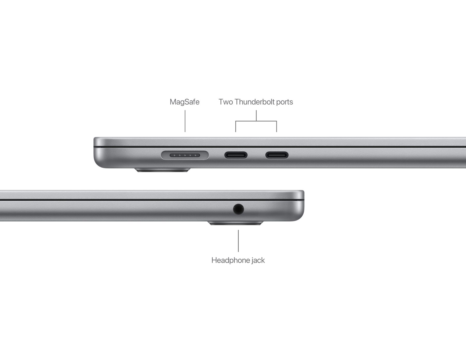 MacBook Air поддерживает до двух внешних дисплеев (при закрытой крышке), открывая новые горизонты для многозадачности. Порты Thunderbolt, разъем MagSafe 3 и 3,5-мм аудиоразъем делают подключение аксессуаров удобным и быстрым.